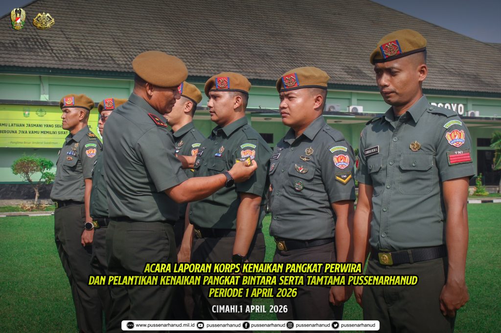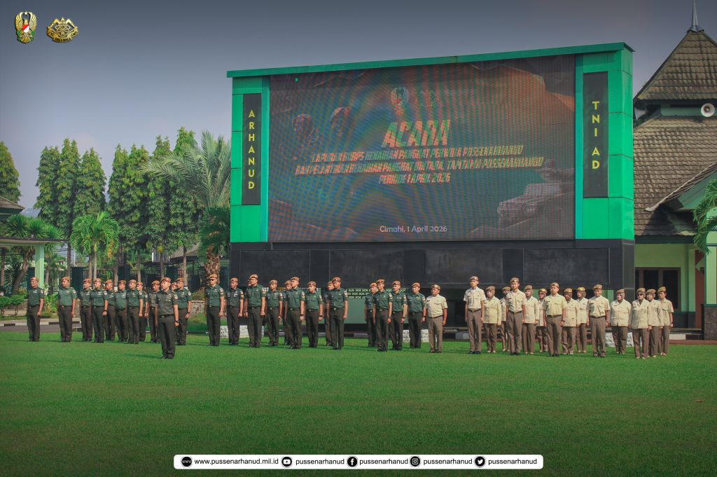 Cimahi — Wakil Komandan Pussenarhanud memimpin langsung Acara Laporan Korps Kenaikan Pangkat Perwira dan Pelantikan Kenaikan Pangkat Bintara serta Tamtama Pussenarhanud periode 1 April 2026 yang berlangsung dengan khidmat dan penuh makna. Kegiatan ini diikuti oleh para prajurit yang memperoleh kenaikan pangkat beserta keluarga besar Pussenarhanud.