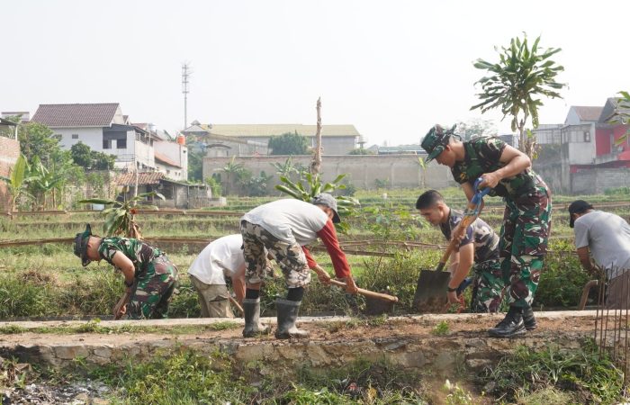 Pussenarhanud Bantu Masyarakat Citeureup Bersihkan Saluran Air.Cimahi. Sebagai bentuk kepedulian terhadap lingkungan masyarakat sekitar, Pussenarhanud bersama-sama anggota masyarakat secara bergotong