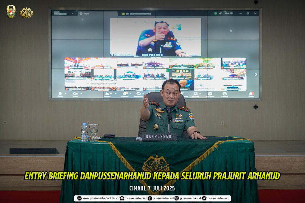 Danpussenarhanud Brigjen TNI R. Edi Setiawan beserta PJU dan seluruh anggota Pusssenarhanud serta Anggota Persit KCK Cabang XIX Pussenarhanud PG Mabesad melaksanakan kegiatan Entry Briefing dalam rangka Serah Terima Jabatan Danpussenarhanud pada hari SeniN, 7 Juli 2025 bertempat di Aula R. Harsoyo Pussenarhanud. Pada kesempatan ini Danpussenarhanud juga memberikan pengarahan kepada seluruh prajurit Korps Arhanud TNI AD dan Persit melalui vicon di satuan masing-masing.