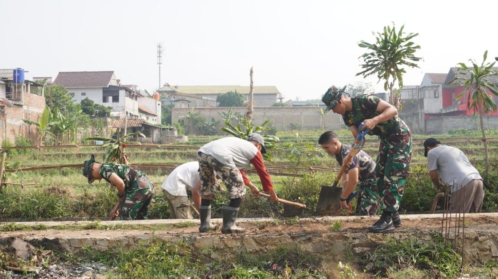 Pussenarhanud Bantu Masyarakat Citeureup Bersihkan Saluran Air.