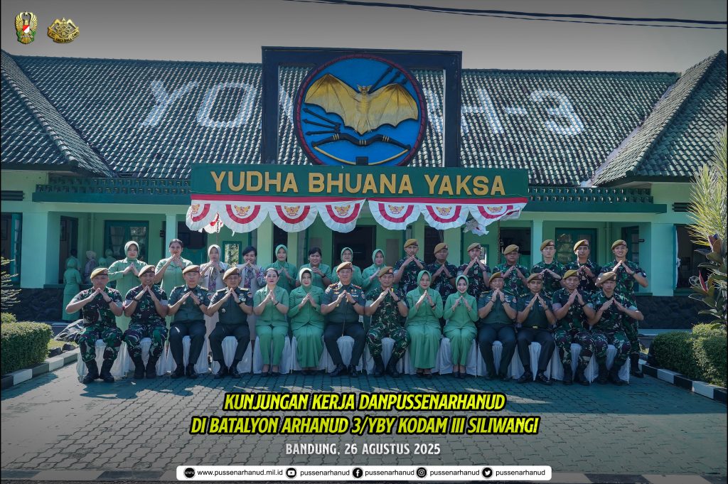 Komandan Pussenarhanud, Mayjen TNI R. Edi Setiawan dan Ketua Persit KCK Cabang XIX Pussenarhanud PG Mabesad Ibu R. Edi Setiawan beserta rombongan, melaksanakan kunjungan kerja ke Batalyon Arhanud 3/YBY Kodam III Siliwangi pada hari Selasa, 26 Agustus 2025.