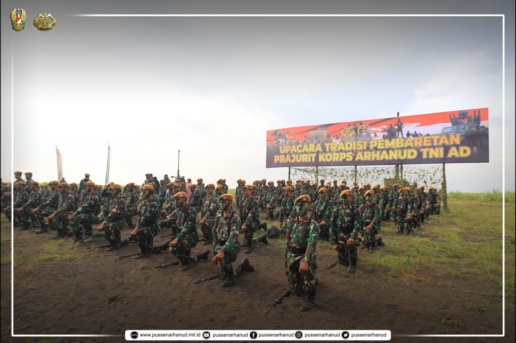 Lumajang, Sejumlah 270 Bintara Siswa menerima Baret Cokelat kebanggaan Korps Arhanud yang bertempat di Lapangan Tembak AWR TNI AU Pandanwangi Lumajang. Kegiatan ini dipimpin langsung oleh Danpusdikarhanud Brigjen TNI I Made Suryawan, S.Sos, MA pada acara Tradisi Korps Pembaretan Prajurit Arhanud Bintara Siswa Dikjurba Arhanud Abit Dikmaba TNI AD TA 2024 (OV). Sabtu (22/3/2025)