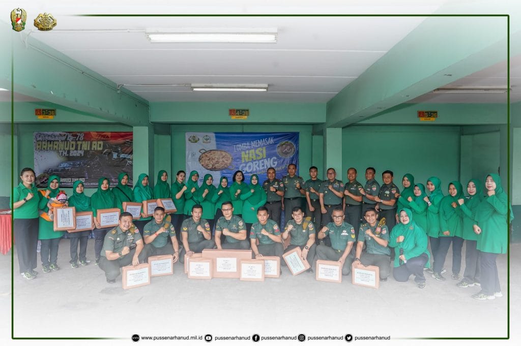 Danpussenarhanud Mayjen TNI Hari Arif Wibowo, S.I.P., M.Han. dan Ibu Ketua Persit KCK Cabang XIX Pussenarhanud PG Mabesad Ibu Dian Hari Arif Wibowo beserta anggota Pussenarhanud dan Persit KCK Cabang XIX Pussenarhanud PG Mabesad melaksanakan kegiatan Lomba memasak dalam rangka memperingati HUT Arhanud TNI AD yang ke 78 pada hari ini, Senin 4 November 2024 bertempat di Mapussenarhanud.