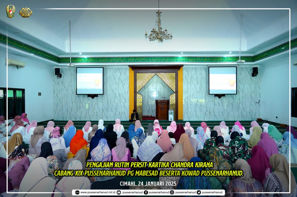 Ketua Persit Kartika Chandra Kirana Cabang XIX Pussenarhanud PG Mabesad Ibu Dian Hari Arif Wibowo beserta anggota Persit Kartika Chandra Kirana Cabang XIX Pussenarhanud PG Mabesad dan Kowad Pussenarhanud melaksanakan kegiatan pengajian rutin pada hari Jum’at, 24 Januari 2025 bertempat di masjid Daarul Mutaqin Pussenarhanud dengan judul materi pengajian “Wanita Yang Dirindukan Surga” yang diberikan oleh Ustad Sahidin.