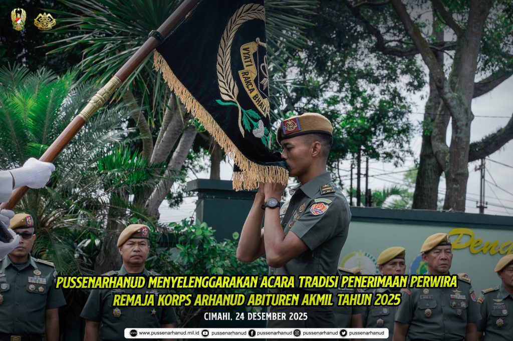 Cimahi, 24 Desember 2025 – Korps Artileri Pertahanan Udara (Arhanud) TNI Angkatan Darat melaksanakan Tradisi Penerimaan Perwira Remaja (Paja) Korps Arhanud TNI AD bagi Abituren Akademi Militer Tahun 2025. Kegiatan ini dilaksanakan di Markas Pusat Kesenjataan Artileri Pertahanan Udara (Pussenarhanud), Cimahi, dan dipimpin langsung oleh Wakil Komandan Pussenarhanud sebagai bagian dari pembinaan awal dan pengukuhan jati diri perwira Korps Arhanud.