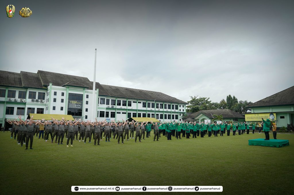 Cimahi — Memasuki hari kedua pelaksanaan Rapat Pembinaan Teknis Kecabangan (Rabinniscab) Arhanud TNI AD TA 2026, kegiatan diawali dengan senam bersama seluruh prajurit Pussenarhanud di Lapangan Upacara Mapussenarhanud, Jumat (27/2/2026). Kegiatan ini menjadi sarana membangun semangat, menjaga kebugaran fisik, serta mempererat soliditas antara peserta Rabinniscab dan keluarga besar Pussenarhanud.