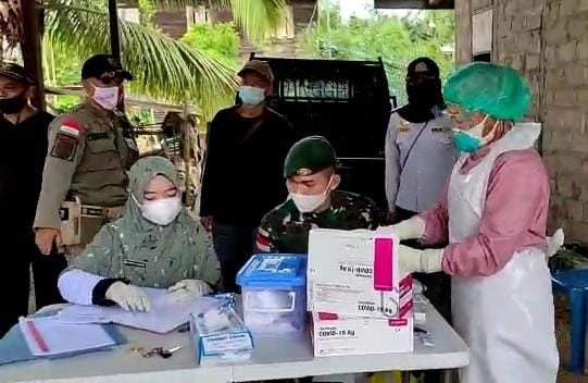 Satgas Pamtas RI- Malaysia Yonarhanud 16/SBC laksanakan tes Swab Antigen bagi pelintas batas.
