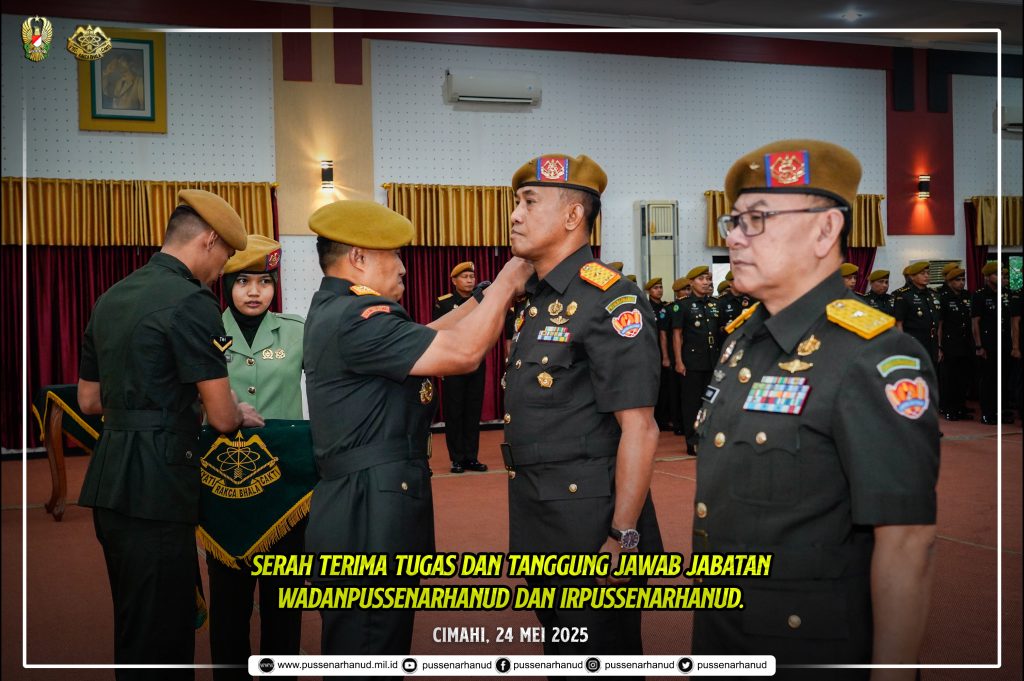 Danpussenarhanud Mayjen TNI Hari Arif Wibowo, S.I.P., M.Han. dan Ketua Persit KCK Cabang XIX Pussenarhanud PG Mabesad Ibu Dian Hari Arif Wibowo beserta PJU dan anggota Pussenarhanud beserta Perwakilan anggota Persit KCK Cabang XIX Pussenarhanud PG Mabesad melaksanakan kegiatan Serah Terima Tugas dan Tanggung Jawab Jabatan Wadan Pussenarhanud dan Inspektur Pussenarhanud pada hari Sabtu, 24 Mei 2025 bertempat di Aula R. Harsoyo Pussenarhanud. Pada acara ini juga dihadiri oleh Danpusdik Arhanud, Kabengpus Arhanud, Danmen Arhanud 1/F Kodam Jaya dan para Danyon Arhanud diwilayah Jawa Barat, Banten dan DKI Jakarta.