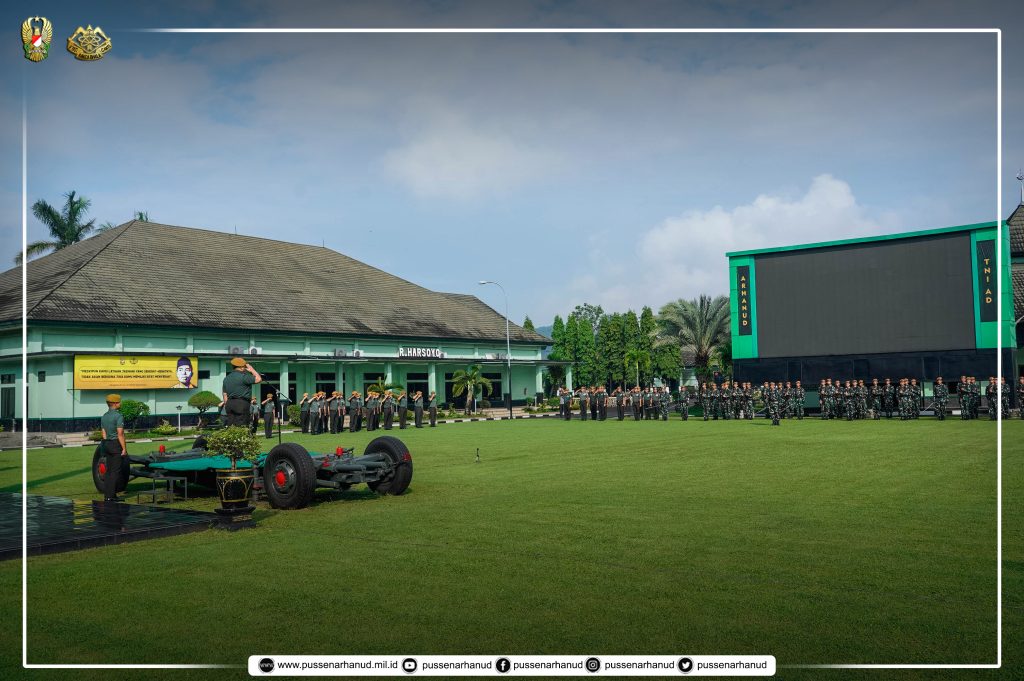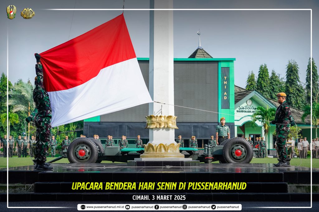 Dirbinrenproggar Pussenarhanud Kolonel Arh Roby Neilwan Simanjuntak, S.I.P. beserta anggota Pussenarhanud melaksanakan kegiatab Upacara Bendera pada hari Senin, 3 Maret 2025 bertempat di lapangan upacara Pussenarhanud.