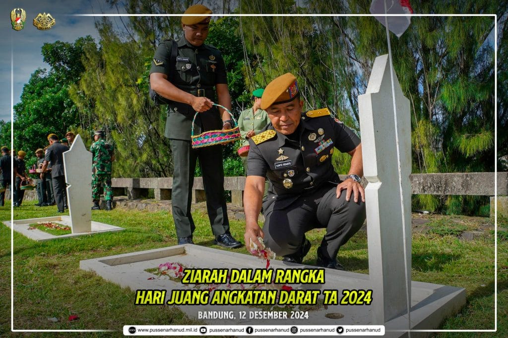 Anggota Pussenarhanud melaksanakan kegiatan ziarah dalam rangka Hari Juang Angkatan Darat TA 2024 pada hari Kamis, 12 Desember 2024 di TMP Cikutra Bandung.